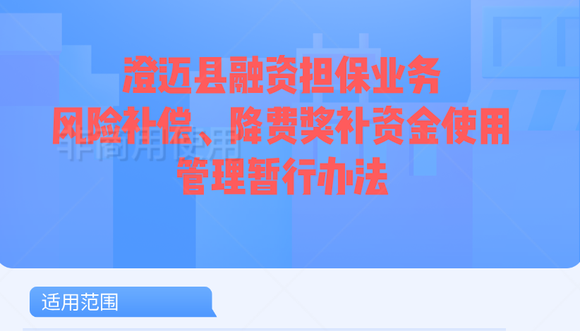 一圖讀懂 丨《澄邁縣融資擔保業務風險補償、降費獎補和...